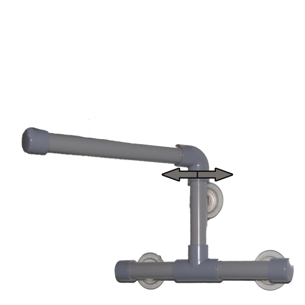 Shower or window pole with double wall suction cups. This PVC is not a plumbing pipe. It is approved by the food industry. The perch section can be covered with non-slip tape.