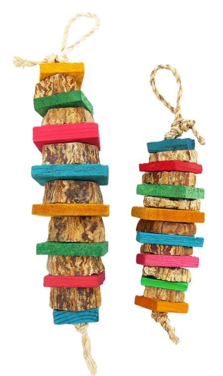 Unique “Vege-leather” palm material that stimulates preening in your pet bird. Good as a foot toy or to hang in the bird cage. Chomperrific!!