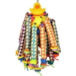 Adorable mini woven palm tote bag adorned with plastic curly Qs, corrugated paper, plastic animal charms, crinkle shred, a rubber duckie and porcupine beach ball. Suitable for small birds.