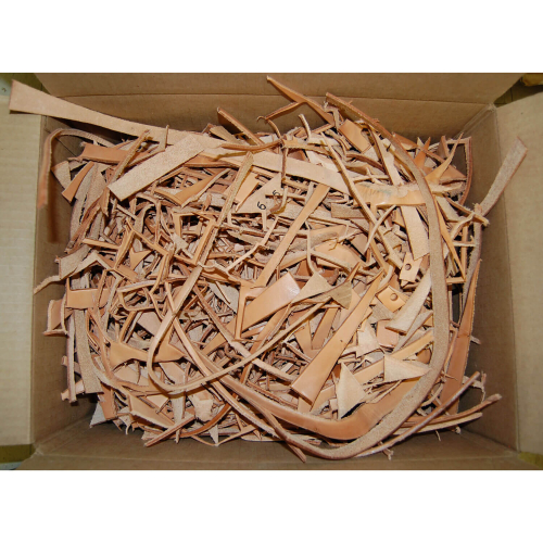 Vegetable leather in 1/2 lb bag. Cockatoos & African Grey will love it. Many different pieces. They will enjoy them for several hours. You can use the leather pieces to refill other toys as well.